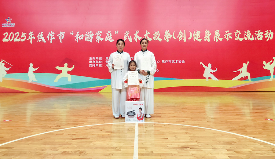 金秋送爽,太极传情。10月31日,2025年焦作市“和谐家庭”武术太极拳(剑)健身展示交流活动在焦作市体育馆举行。该赛事由焦作市体育局、焦作市妇女联合会联合主办,旨在践行《全民健身计划(2021-2025)》、助推“世界太极城、中国养生地”建设。孟州市太极拳协会陈乃荣家庭代表队的陈乃荣、乔莲洁、花语彤凭借各自的实力、精湛的太极拳技艺与深厚的功底,在众多参赛队伍中脱颖而出,成功斩获一等奖,为孟州市再添光彩。