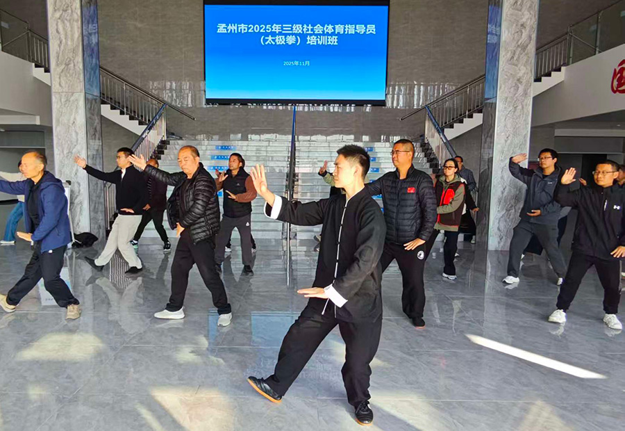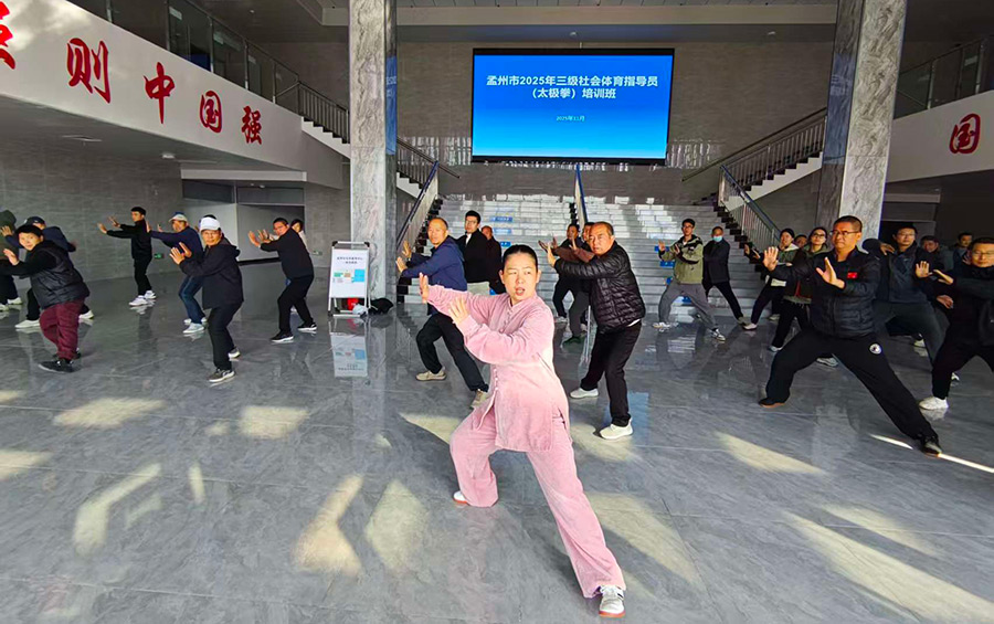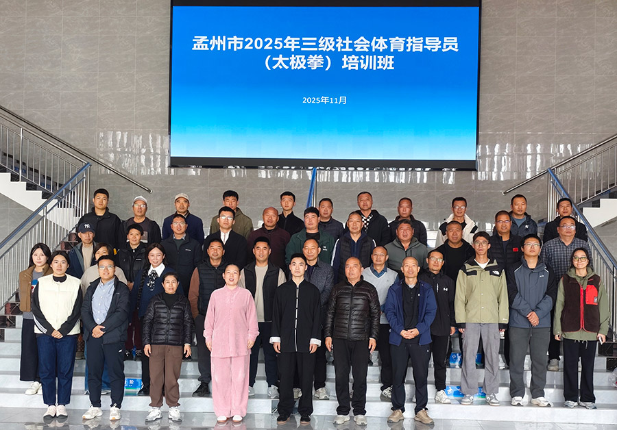 2025年11月3日,孟州市太极拳协会接孟州市教育体育局通知,选派乔莲洁教练和王栋恩教练担任孟州市2025年三级社会体育指导员(太极拳)培训班培训导师,将太极拳这一传统体育项目的魅力与科学健身理念相结合。本次培训旨在进一步加强孟州市基层体育指导员队伍建设,丰富全民健身指导内容,提升体育指导员的专业素养和教学实践能力,使其更好地开展太极拳教学工作。